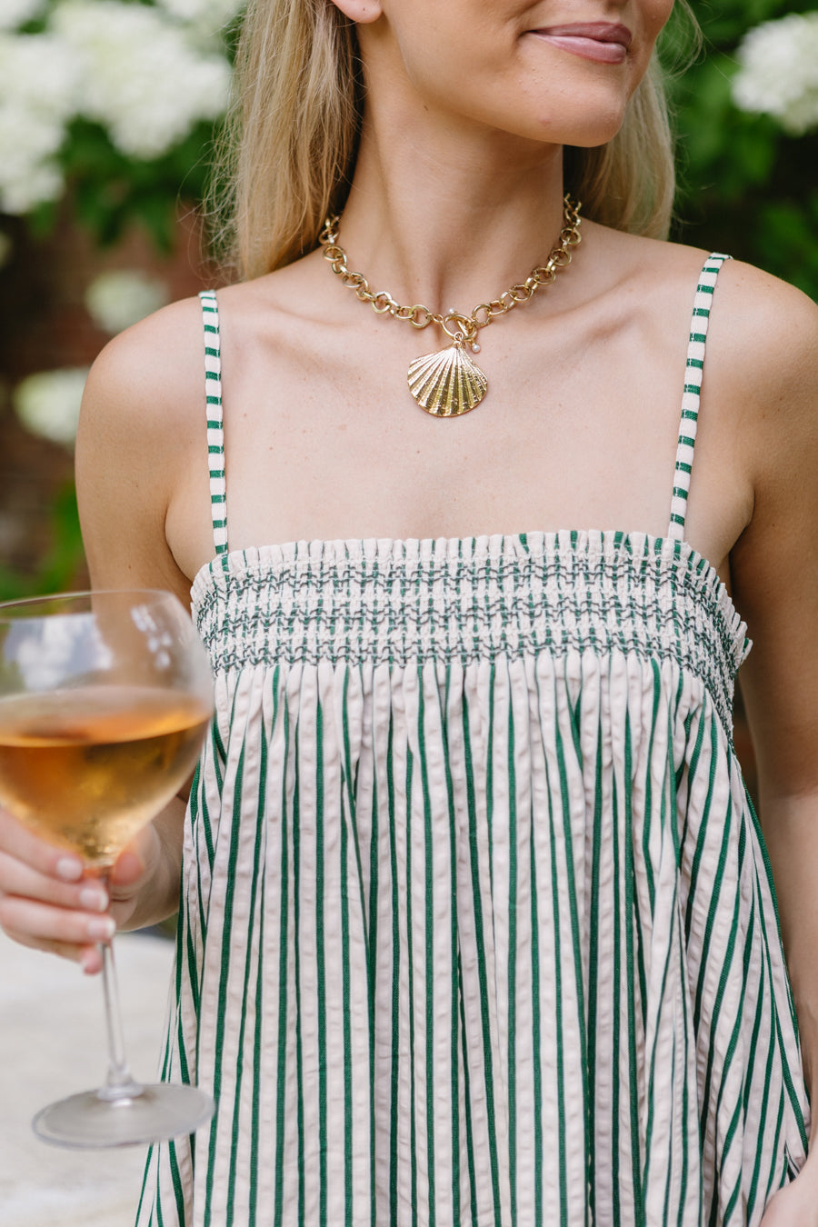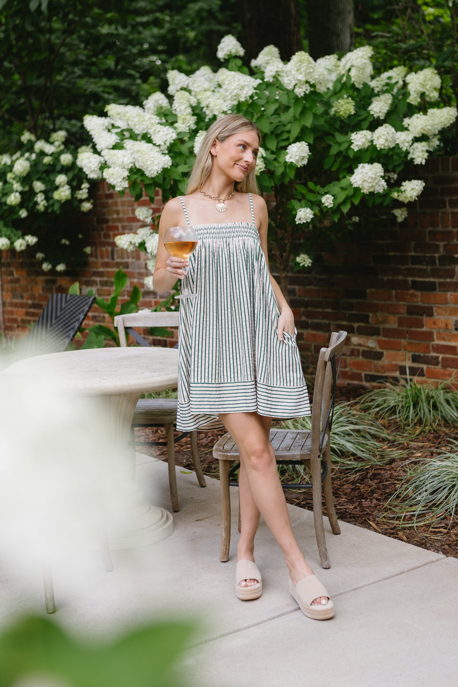 Green striped babydoll dress