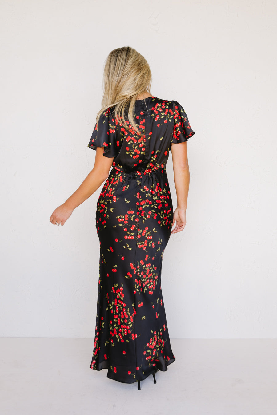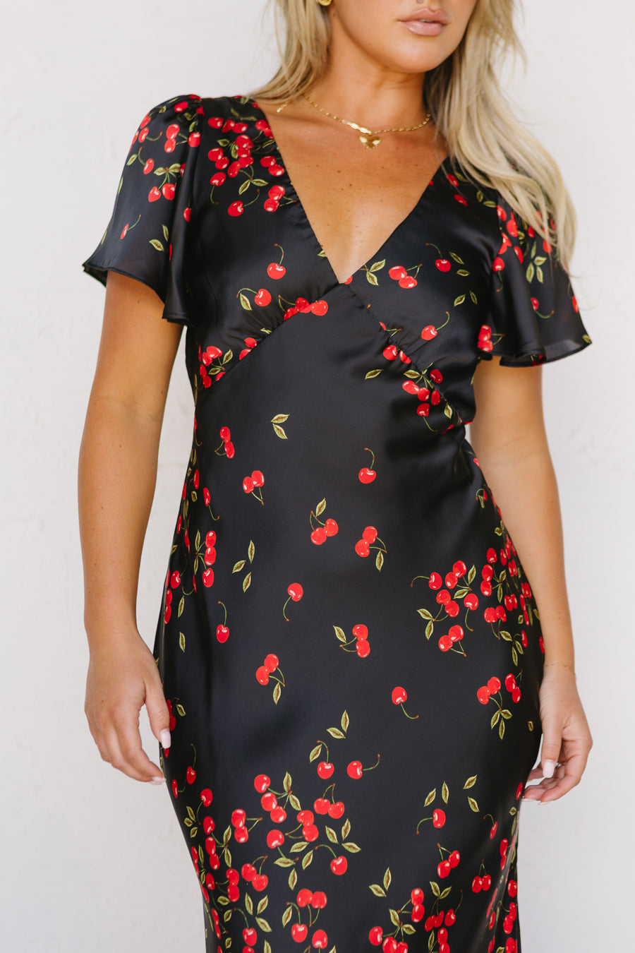 Cherry print satin dress